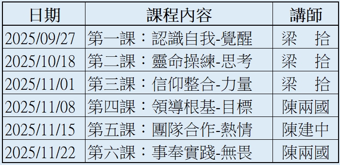 ● 裝備青年在教會、家庭與職場中發揮屬靈領導影響力